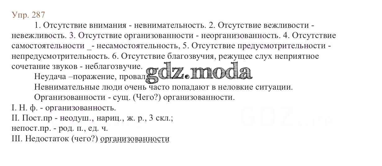 ОТВЕТ на задание № 287 Учебник по Русскому языку 6 класс Баранов