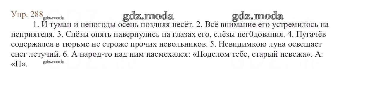 ОТВЕТ на задание № 288 Учебник по Русскому языку 6 класс Баранов