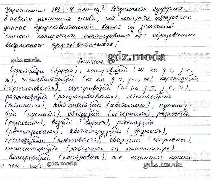ОТВЕТ на задание № 293 Учебник по Русскому языку 6 класс Баранов