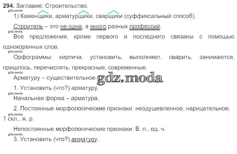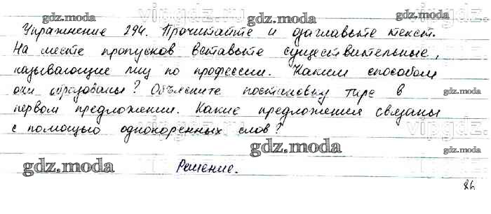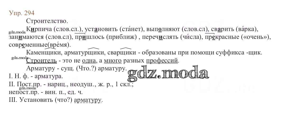 ОТВЕТ на задание № 294 Учебник по Русскому языку 6 класс Баранов