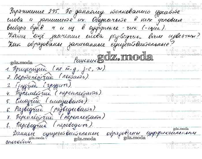 ОТВЕТ на задание № 295 Учебник по Русскому языку 6 класс Баранов