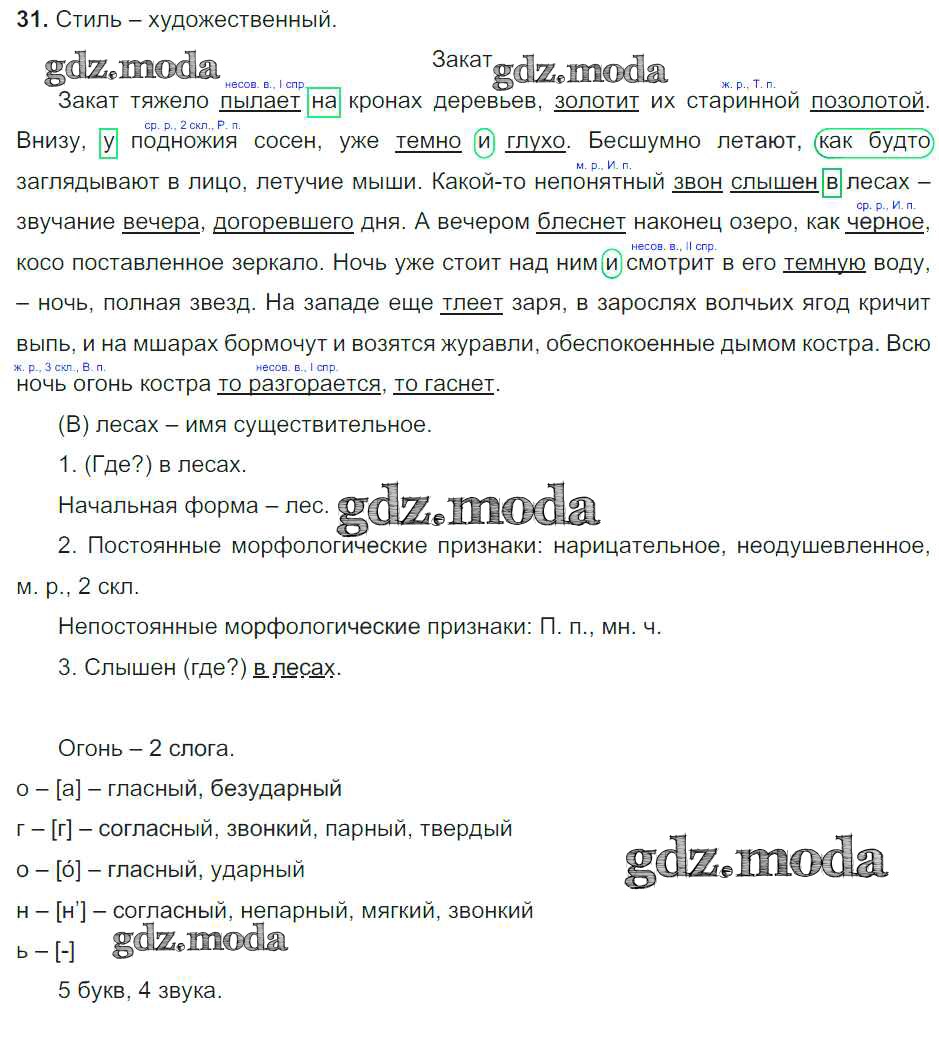 ОТВЕТ на задание № 31 Учебник по Русскому языку 6 класс Баранов