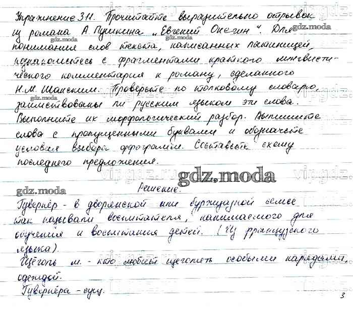 ОТВЕТ на задание № 311 Учебник по Русскому языку 6 класс Баранов