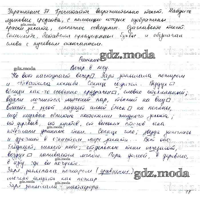 ОТВЕТ на задание № 37 Учебник по Русскому языку 6 класс Баранов