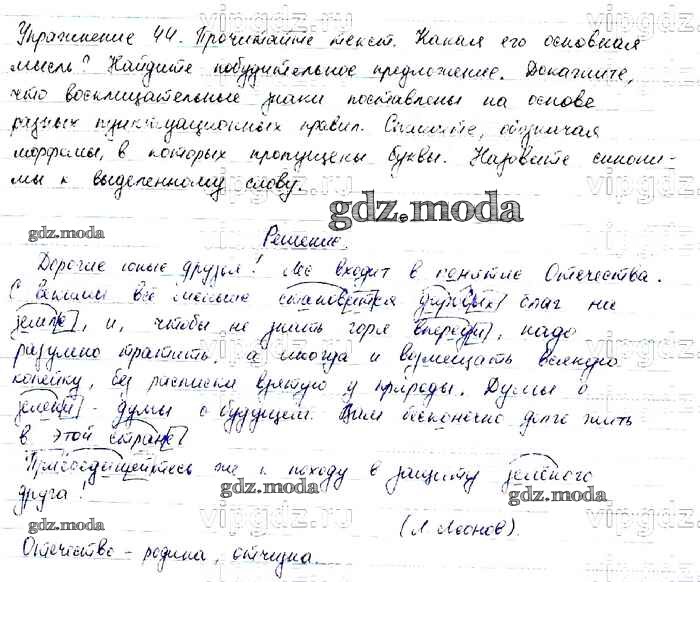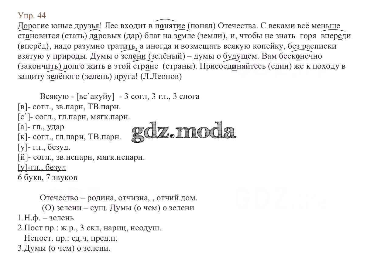 ОТВЕТ на задание № 44 Учебник по Русскому языку 6 класс Баранов