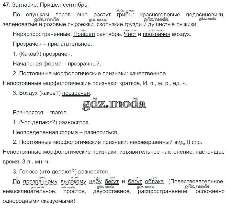 ОТВЕТ на задание № 47 Учебник по Русскому языку 6 класс Баранов