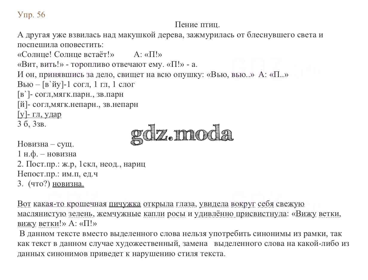 ОТВЕТ на задание № 56 Учебник по Русскому языку 6 класс Баранов