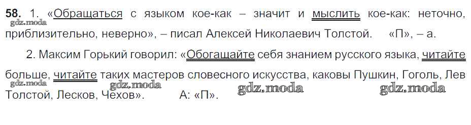 ОТВЕТ на задание № 58 Учебник по Русскому языку 6 класс Баранов