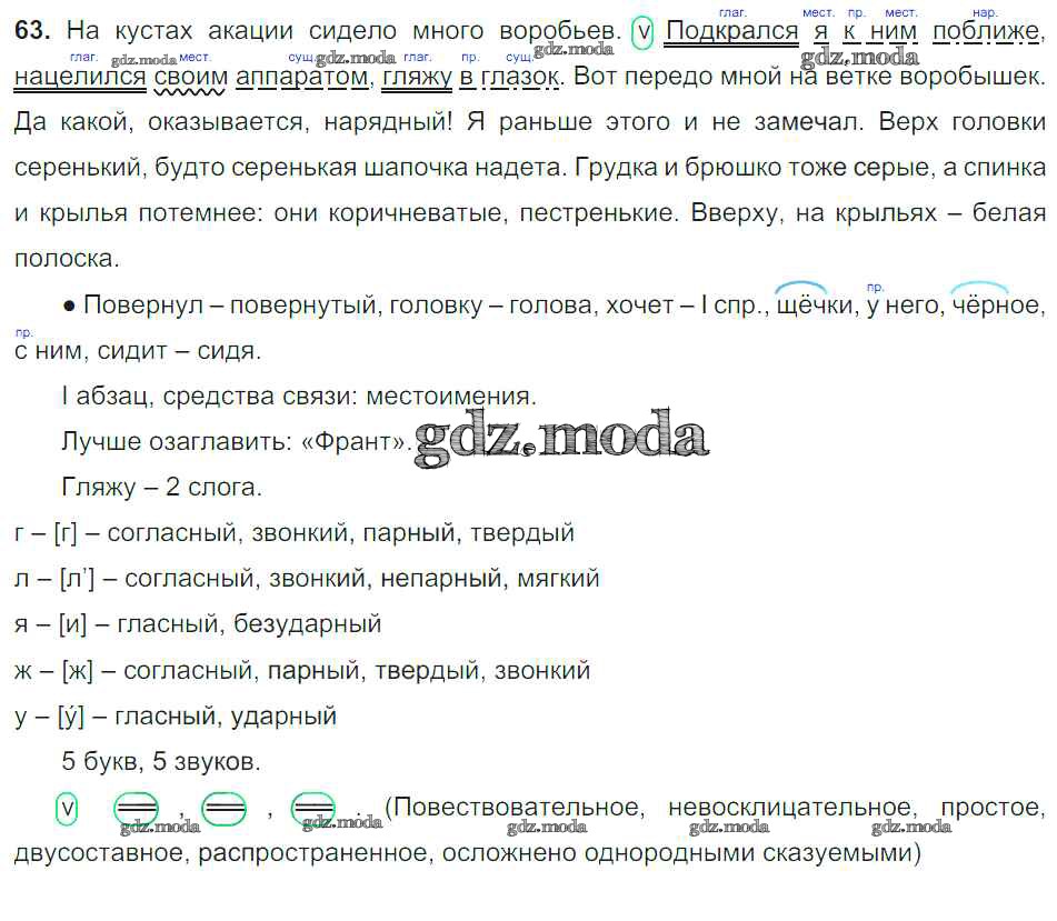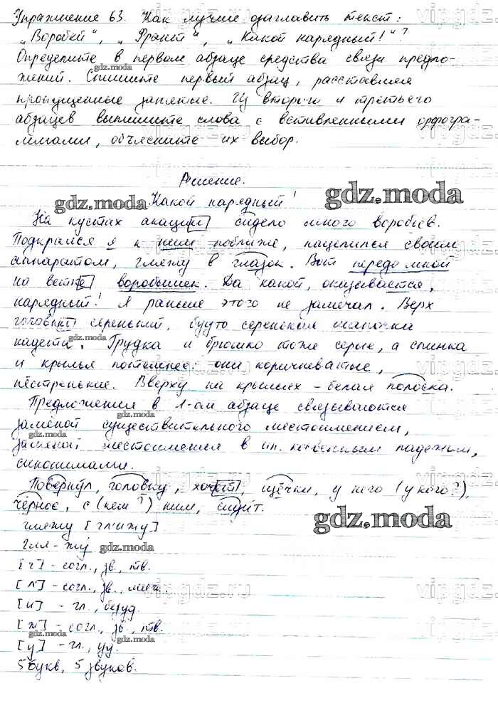 ОТВЕТ на задание № 63 Учебник по Русскому языку 6 класс Баранов