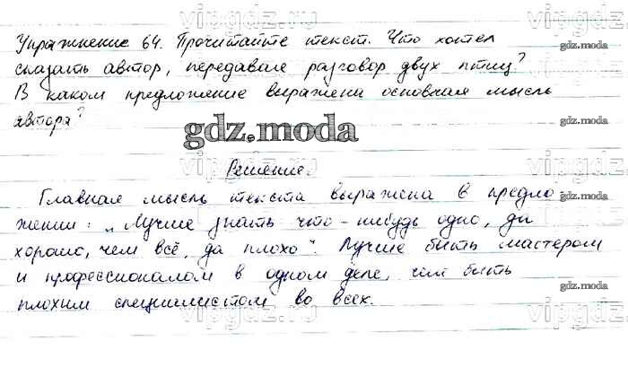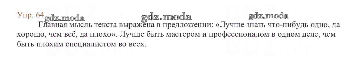 ОТВЕТ на задание № 64 Учебник по Русскому языку 6 класс Баранов