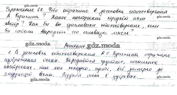 ОТВЕТ на задание № 67 Учебник по Русскому языку 6 класс Баранов