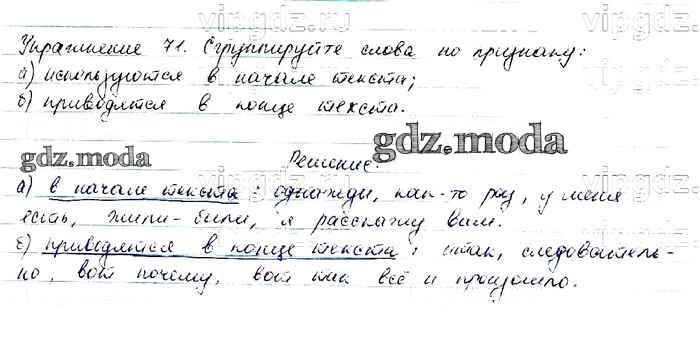 ОТВЕТ на задание № 71 Учебник по Русскому языку 6 класс Баранов