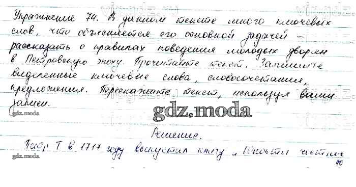 ОТВЕТ на задание № 74 Учебник по Русскому языку 6 класс Баранов