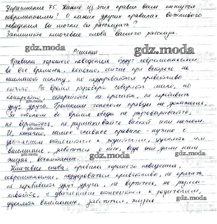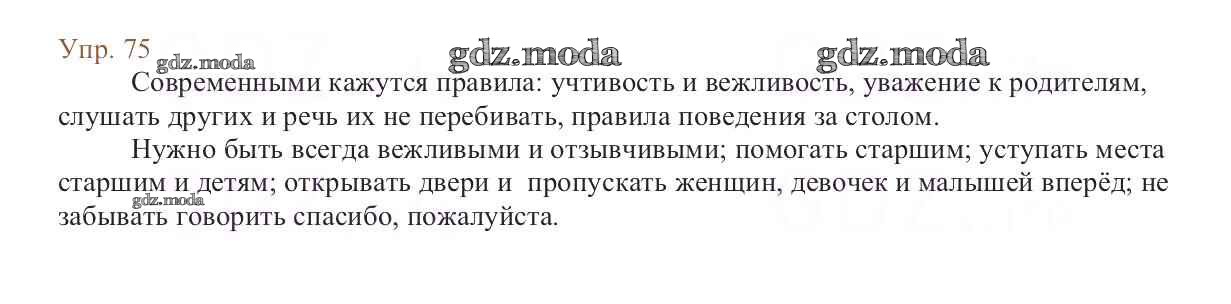 ОТВЕТ на задание № 75 Учебник по Русскому языку 6 класс Баранов