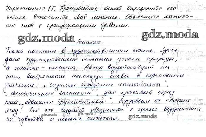 ОТВЕТ на задание № 85 Учебник по Русскому языку 6 класс Баранов