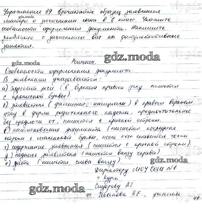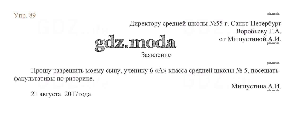 ОТВЕТ на задание № 89 Учебник по Русскому языку 6 класс Баранов