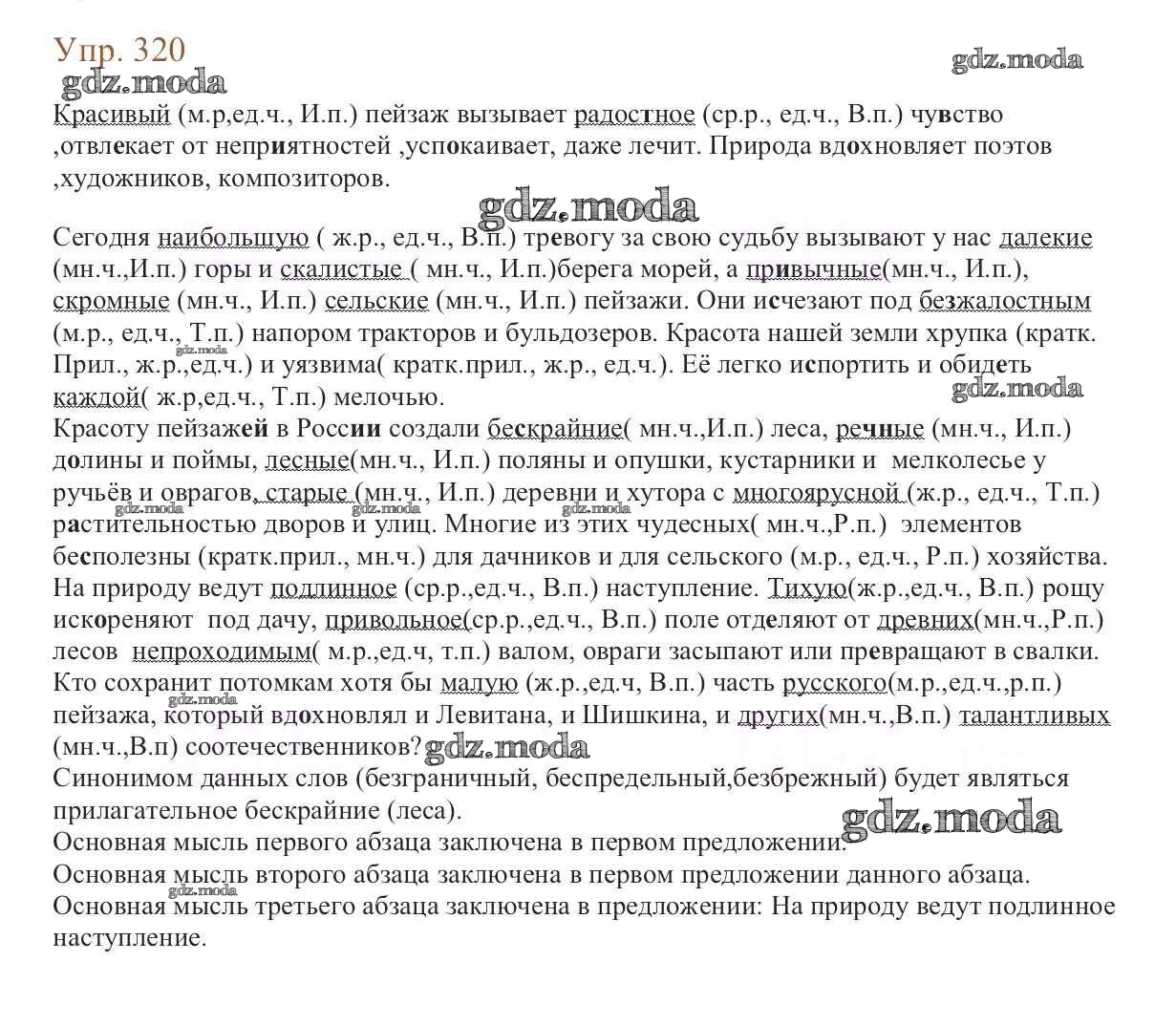 ОТВЕТ на задание № 320 Учебник по Русскому языку 6 класс Баранов