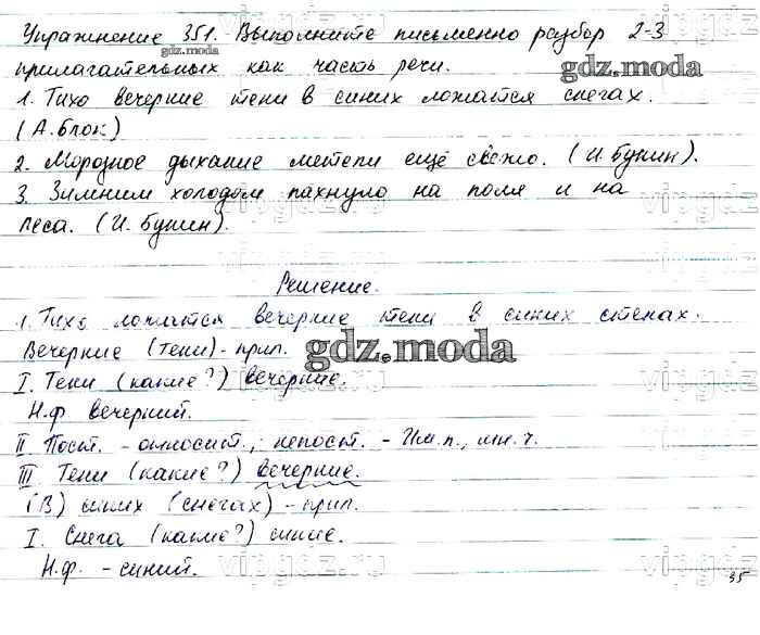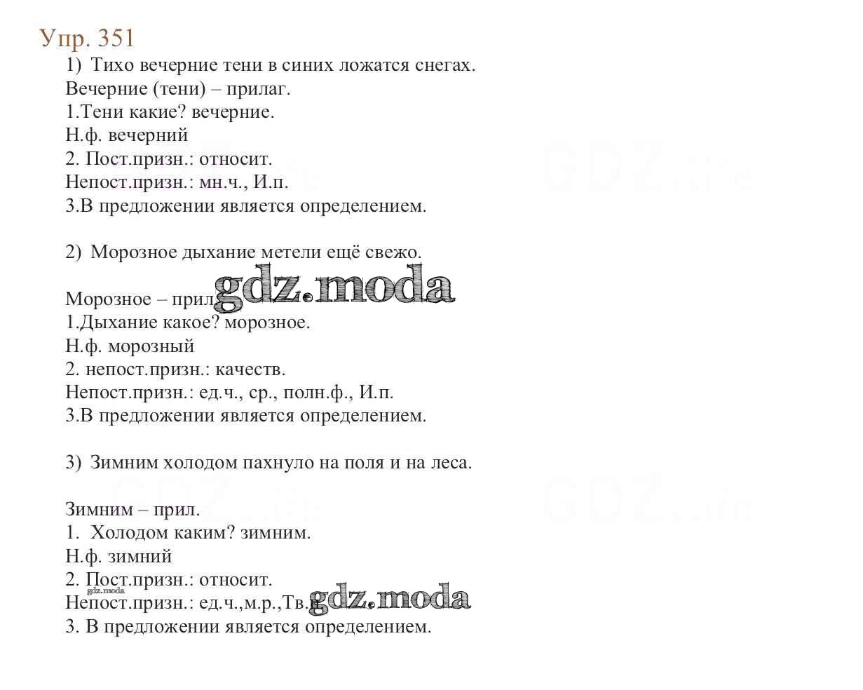 ОТВЕТ на задание № 351 Учебник по Русскому языку 6 класс Баранов