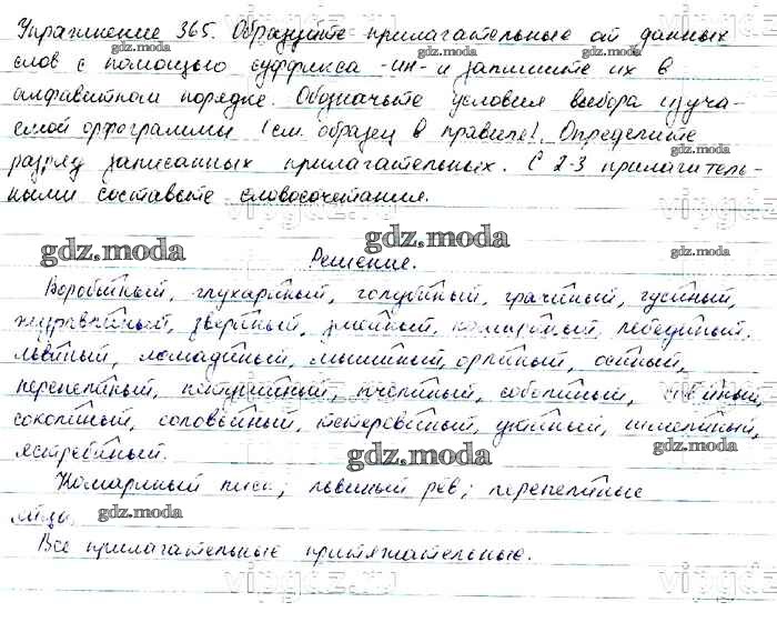 ОТВЕТ на задание № 365 Учебник по Русскому языку 6 класс Баранов