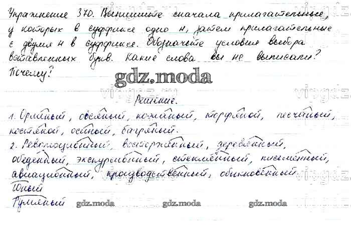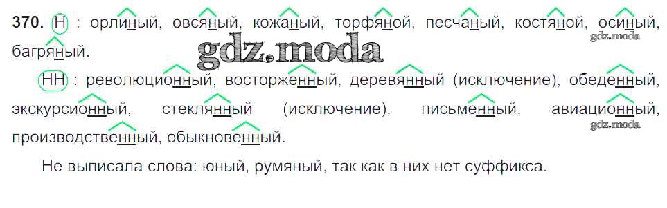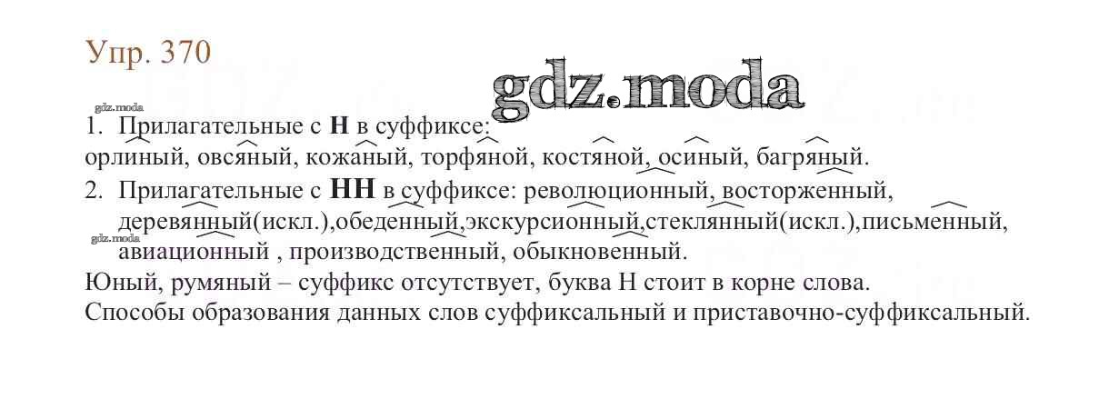ОТВЕТ на задание № 370 Учебник по Русскому языку 6 класс Баранов