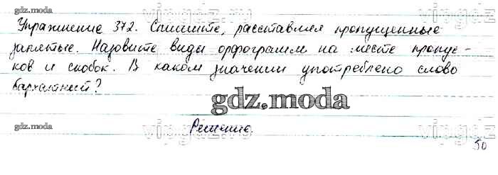 ОТВЕТ на задание № 372 Учебник по Русскому языку 6 класс Баранов
