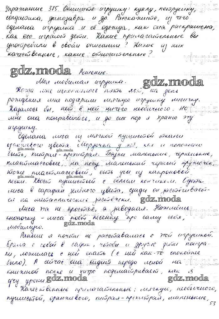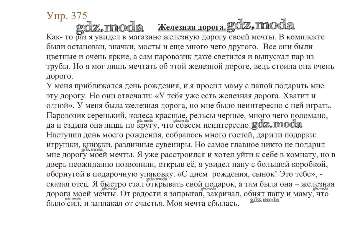 ОТВЕТ на задание № 375 Учебник по Русскому языку 6 класс Баранов