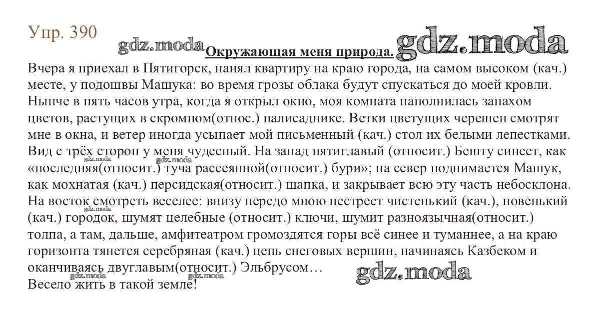 ОТВЕТ на задание № 390 Учебник по Русскому языку 6 класс Баранов