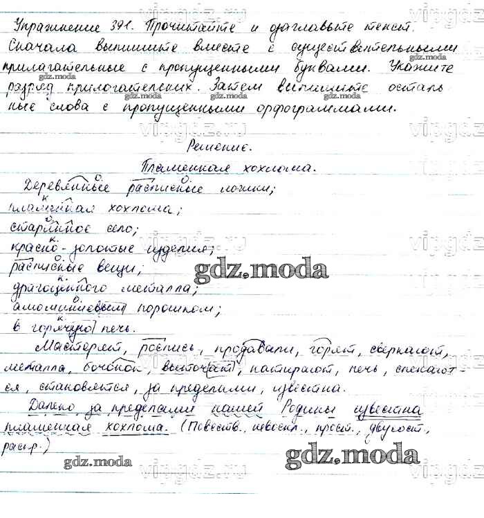 ОТВЕТ на задание № 391 Учебник по Русскому языку 6 класс Баранов