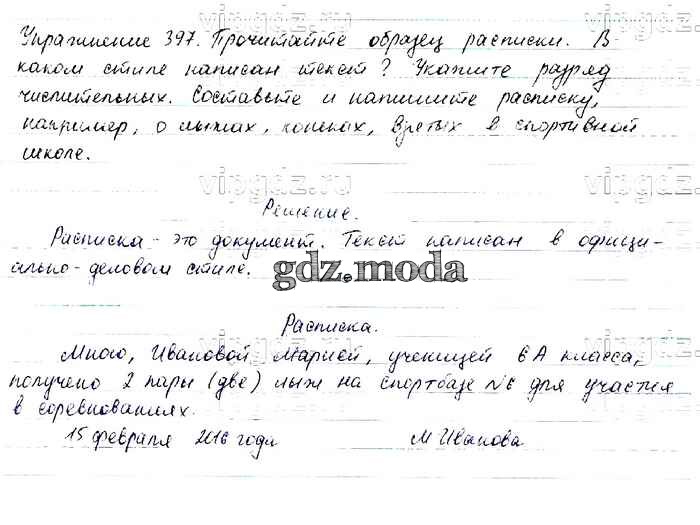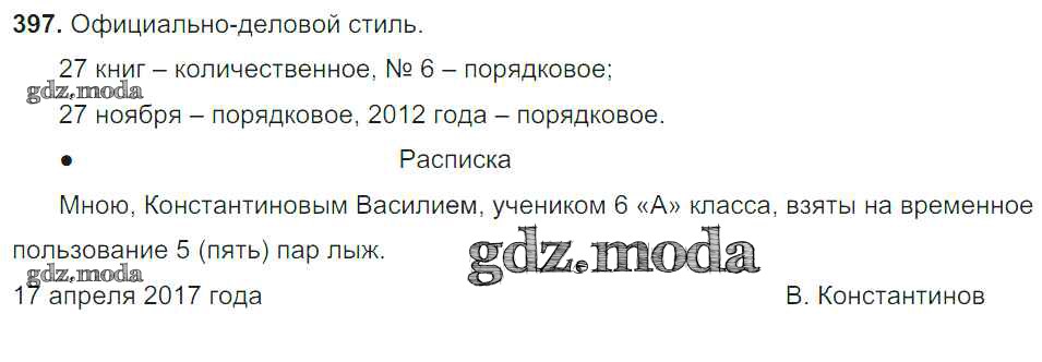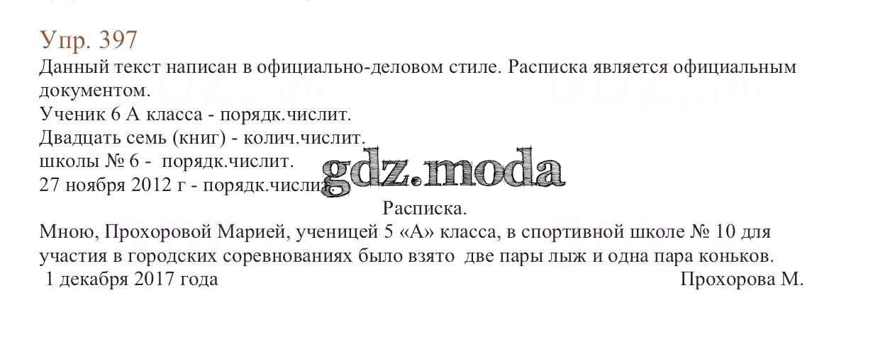ОТВЕТ на задание № 397 Учебник по Русскому языку 6 класс Баранов
