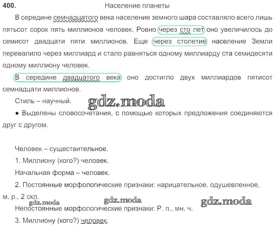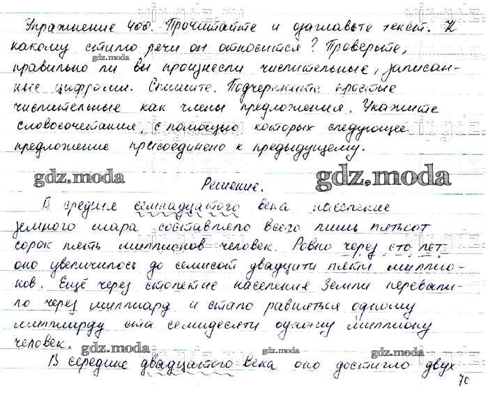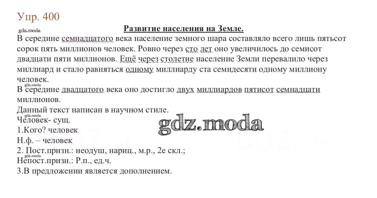 ОТВЕТ на задание № 400 Учебник по Русскому языку 6 класс Баранов