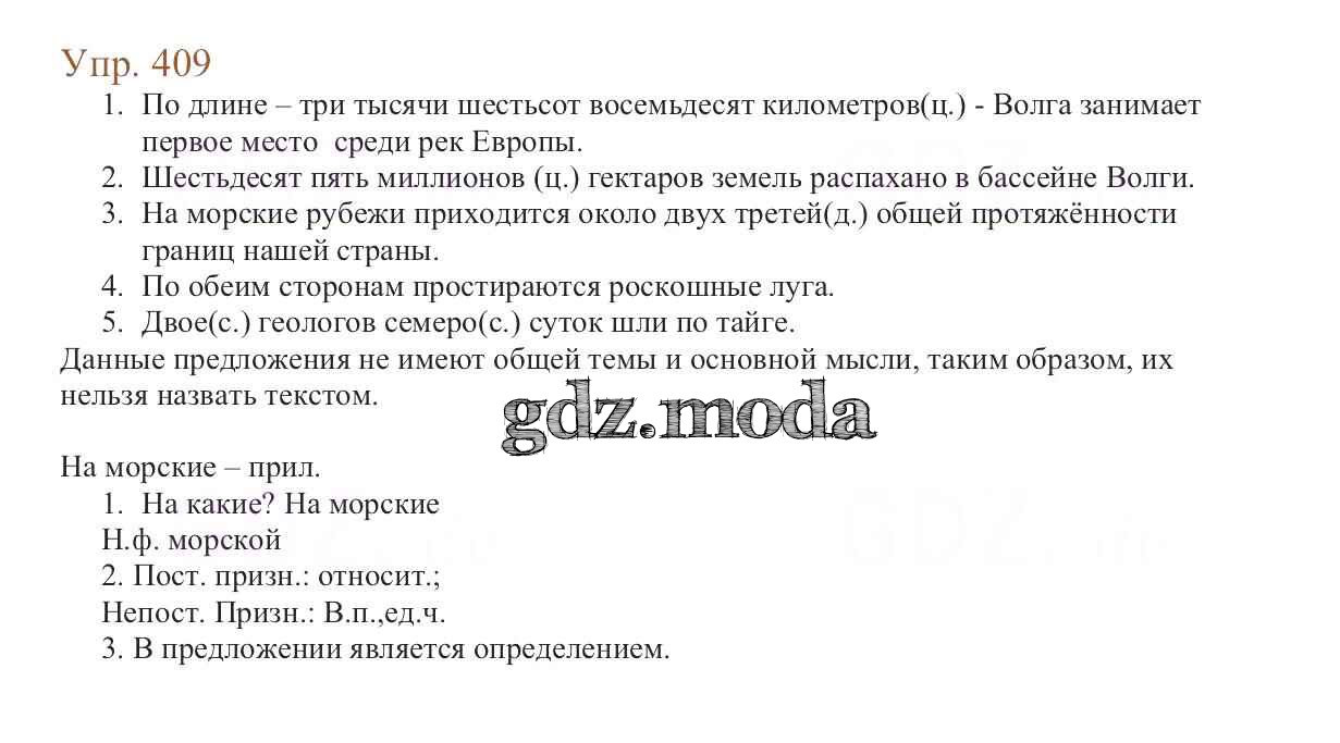 ОТВЕТ на задание № 409 Учебник по Русскому языку 6 класс Баранов