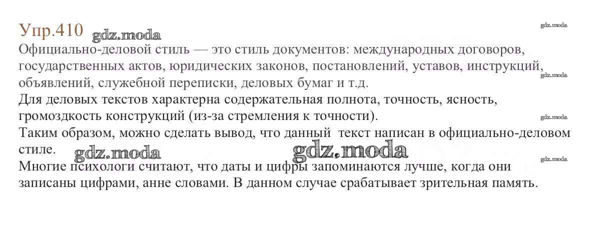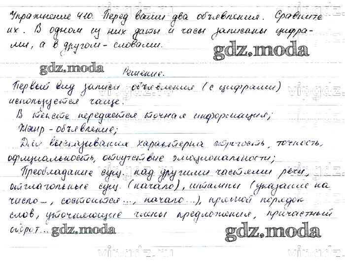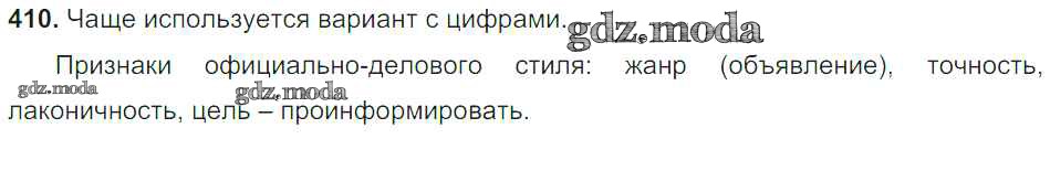 ОТВЕТ на задание № 410 Учебник по Русскому языку 6 класс Баранов