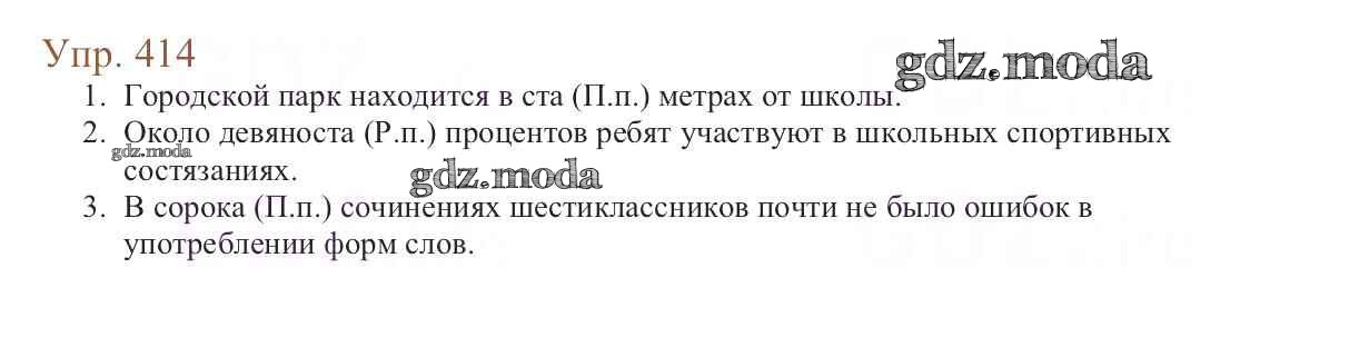 ОТВЕТ на задание № 414 Учебник по Русскому языку 6 класс Баранов