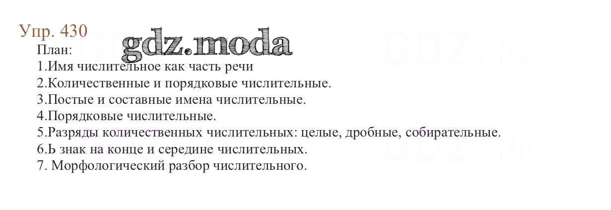 ОТВЕТ на задание № 430 Учебник по Русскому языку 6 класс Баранов