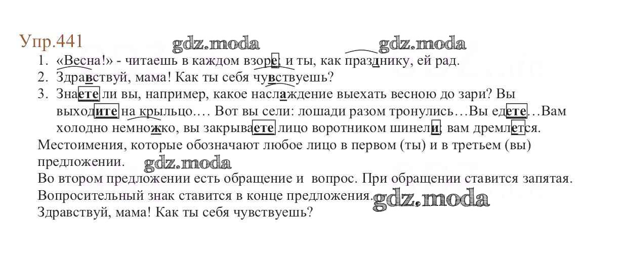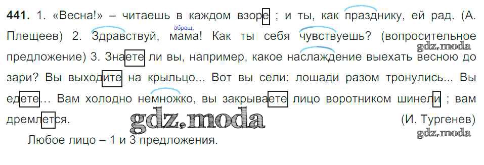 ОТВЕТ на задание № 441 Учебник по Русскому языку 6 класс Баранов