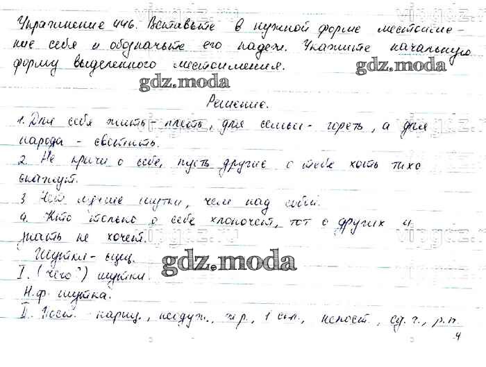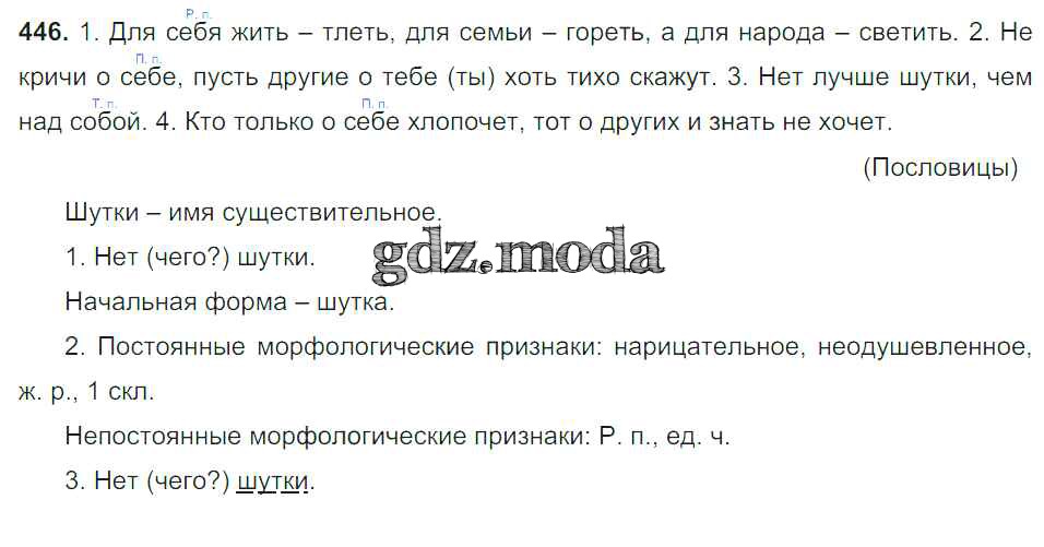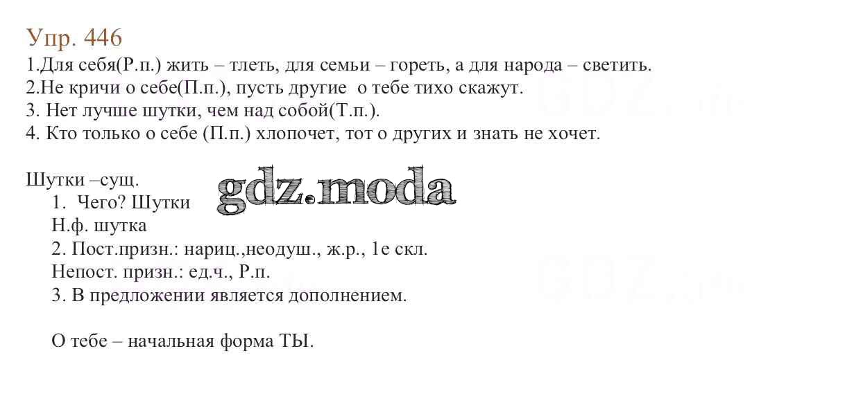 ОТВЕТ на задание № 446 Учебник по Русскому языку 6 класс Баранов