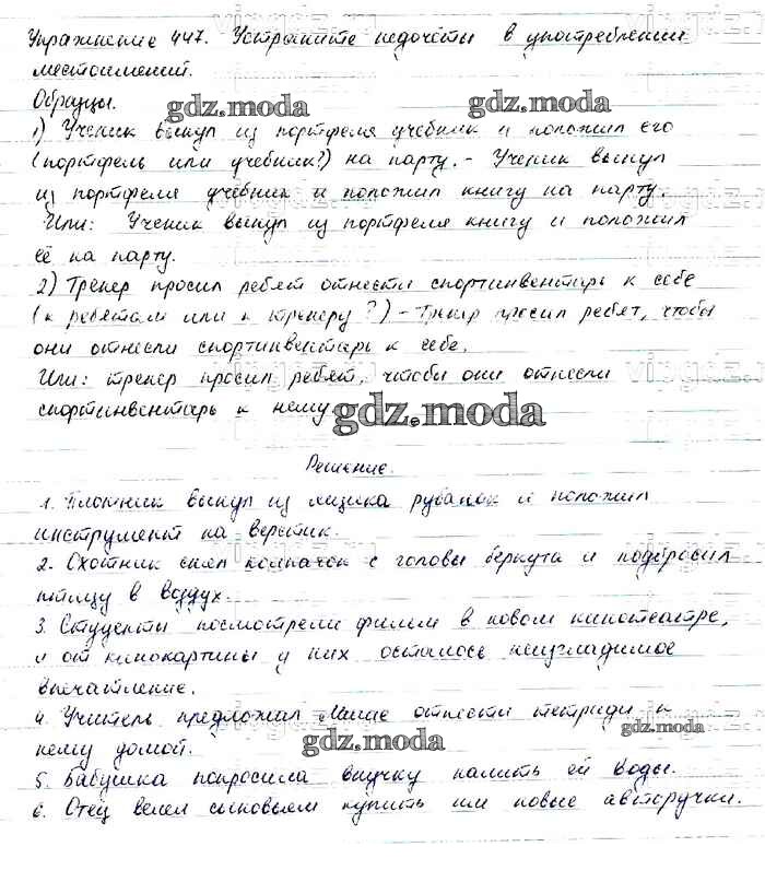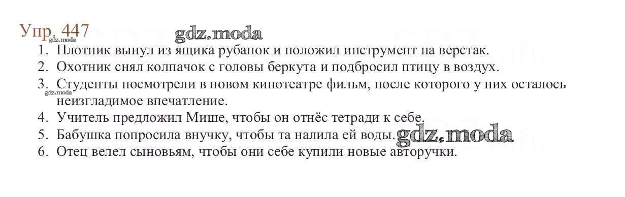 ОТВЕТ на задание № 447 Учебник по Русскому языку 6 класс Баранов