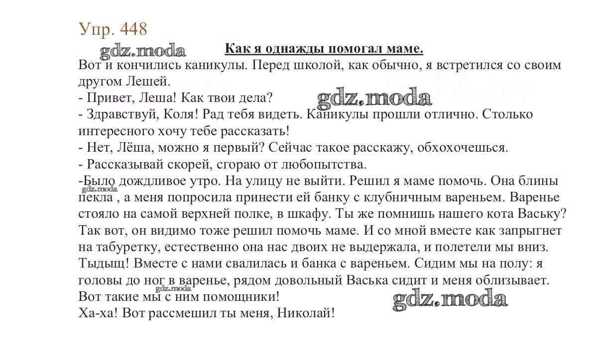 ОТВЕТ на задание № 448 Учебник по Русскому языку 6 класс Баранов