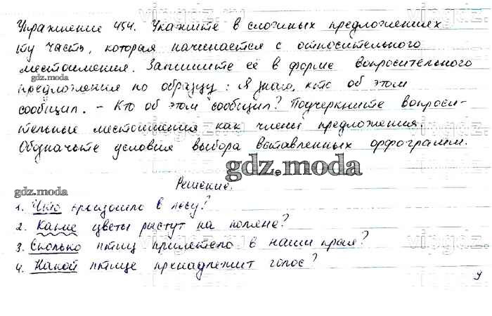 ОТВЕТ на задание № 454 Учебник по Русскому языку 6 класс Баранов