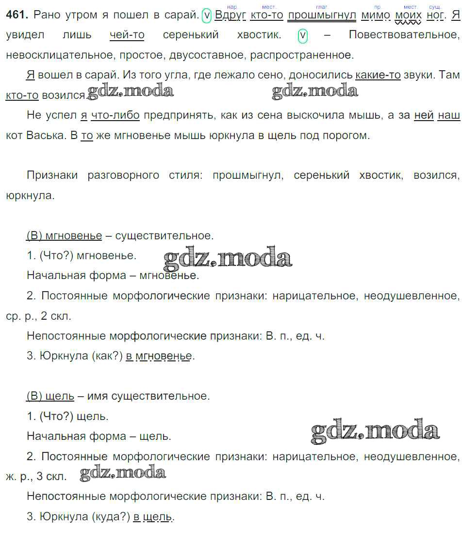 ОТВЕТ на задание № 461 Учебник по Русскому языку 6 класс Баранов