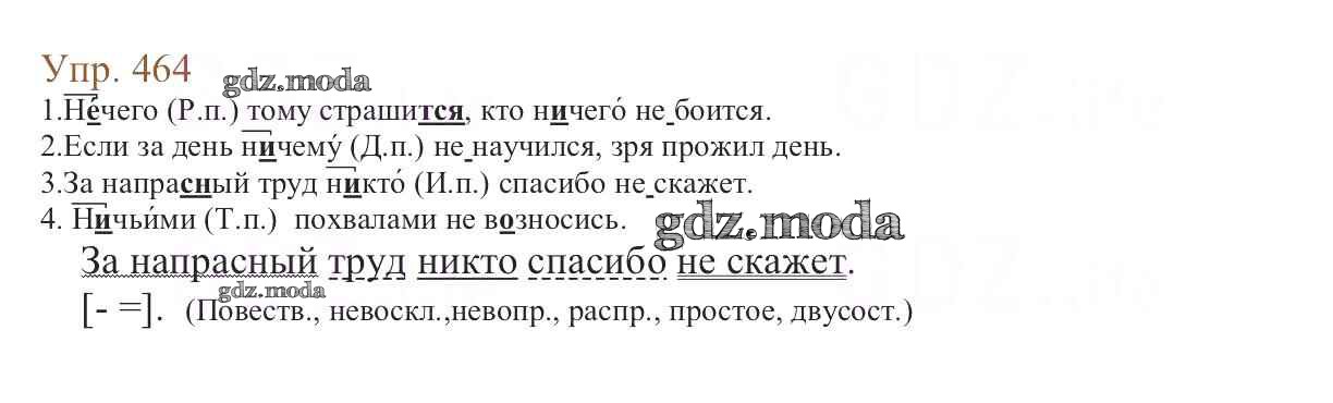 ОТВЕТ на задание № 464 Учебник по Русскому языку 6 класс Баранов