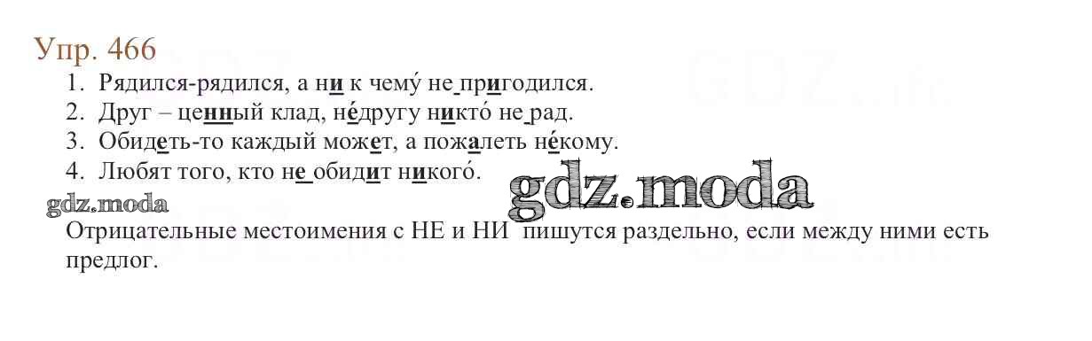 ОТВЕТ на задание № 466 Учебник по Русскому языку 6 класс Баранов