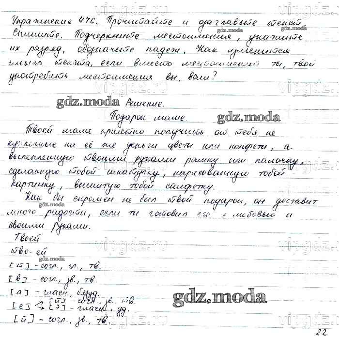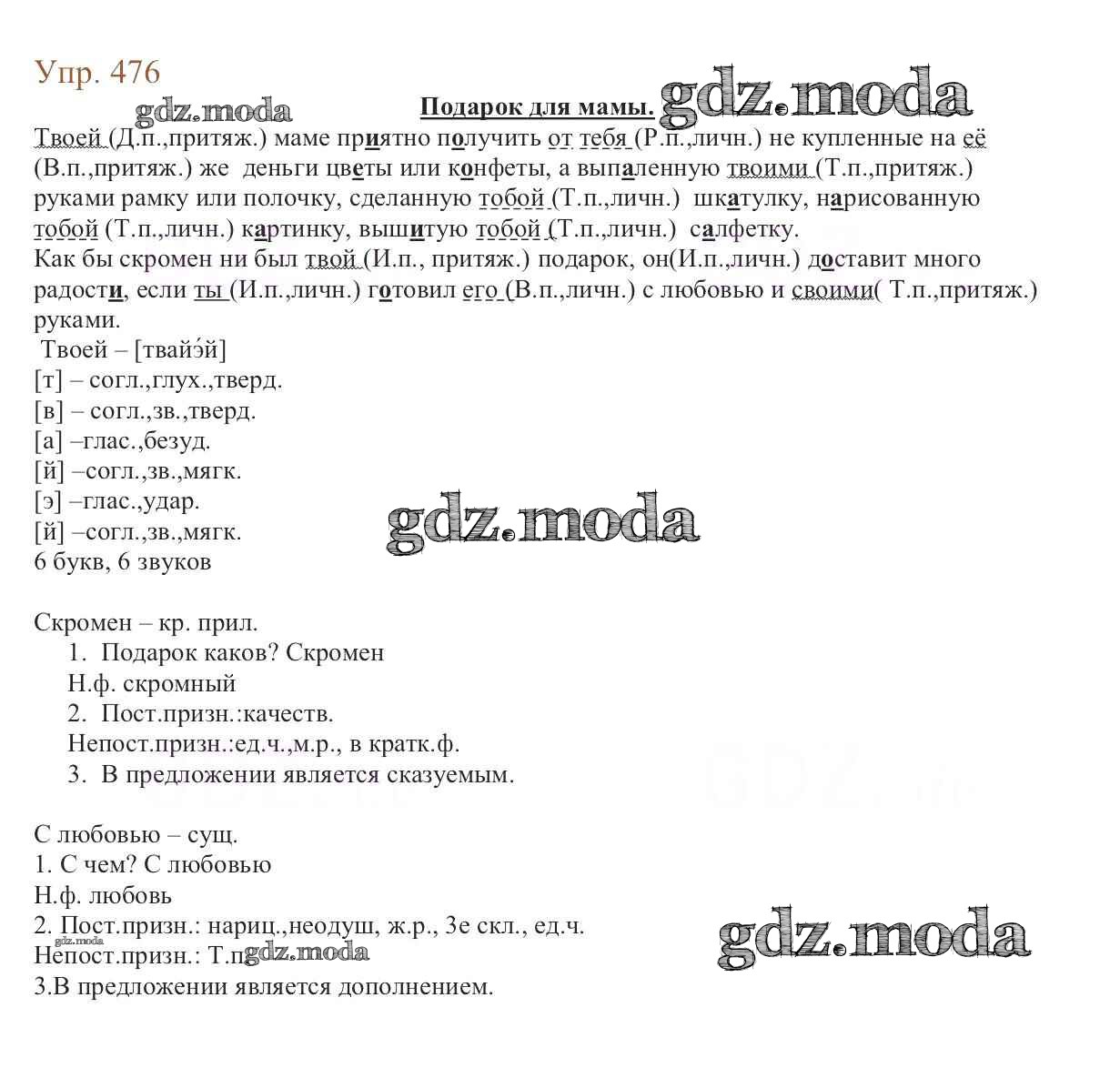 ОТВЕТ на задание № 476 Учебник по Русскому языку 6 класс Баранов