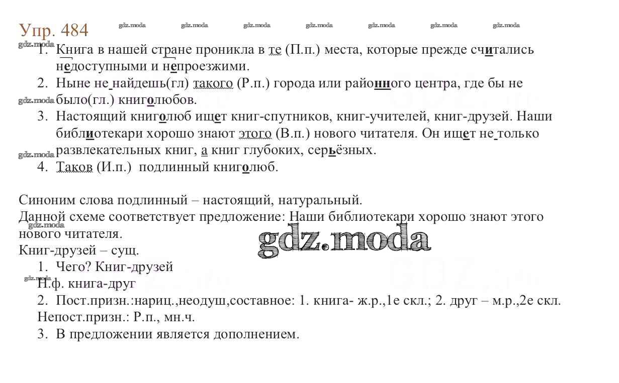 ОТВЕТ на задание № 484 Учебник по Русскому языку 6 класс Баранов