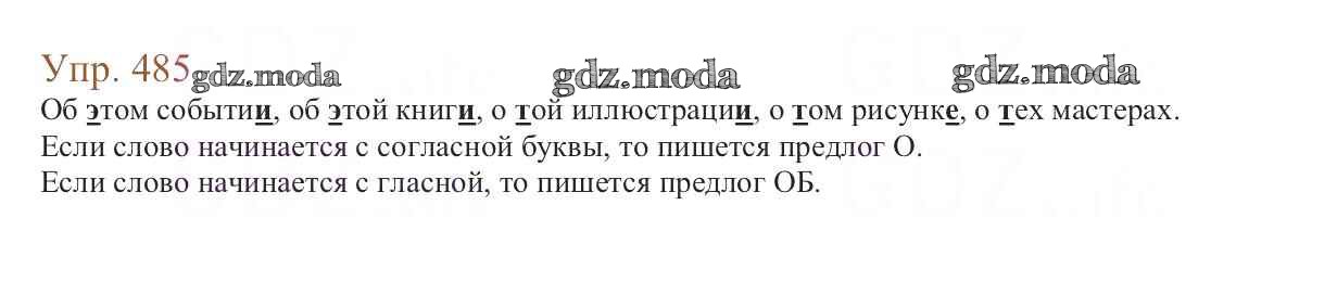 ОТВЕТ на задание № 485 Учебник по Русскому языку 6 класс Баранов