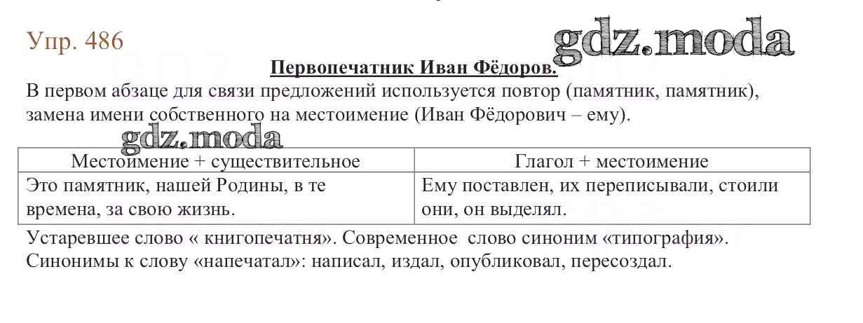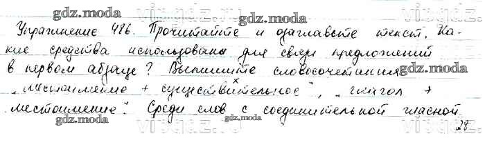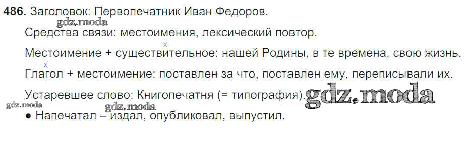ОТВЕТ на задание № 486 Учебник по Русскому языку 6 класс Баранов