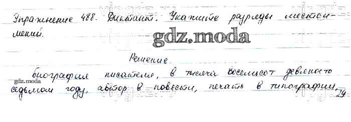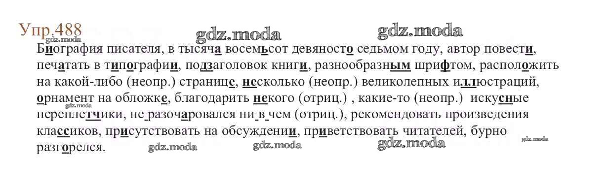 ОТВЕТ на задание № 488 Учебник по Русскому языку 6 класс Баранов