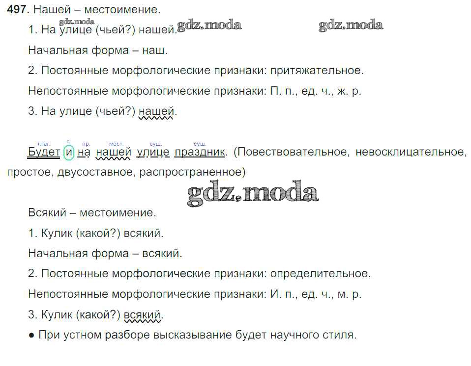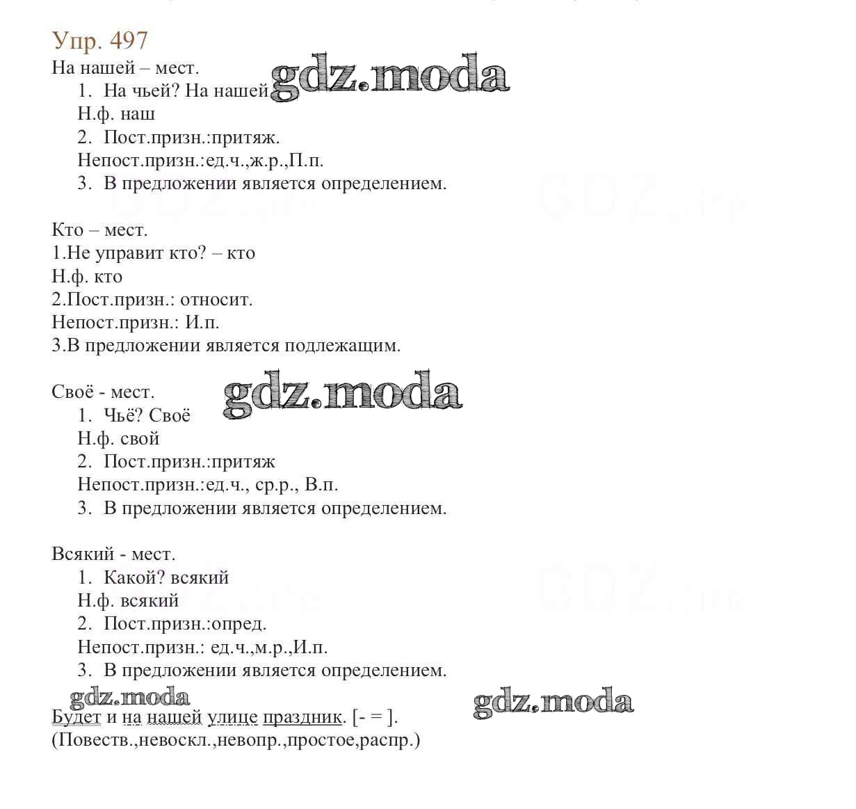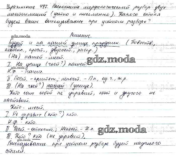 ОТВЕТ на задание № 497 Учебник по Русскому языку 6 класс Баранов