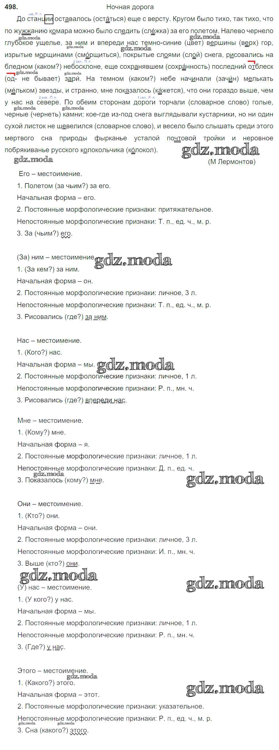 ОТВЕТ на задание № 498 Учебник по Русскому языку 6 класс Баранов