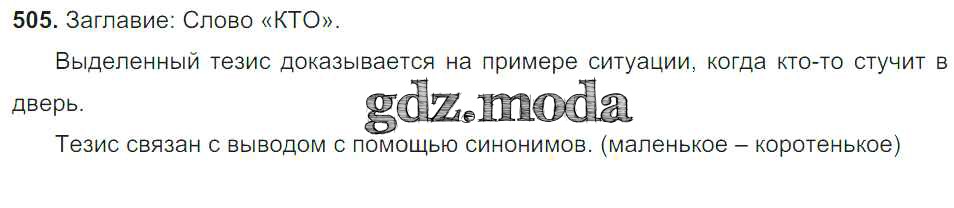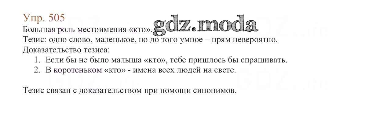 ОТВЕТ на задание № 505 Учебник по Русскому языку 6 класс Баранов